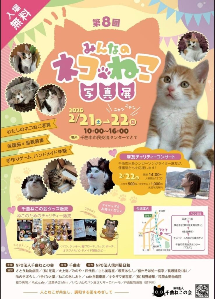お手伝いしている、NPO法人千曲ねこの会のイベント「みんなのネコねこ写真展」。