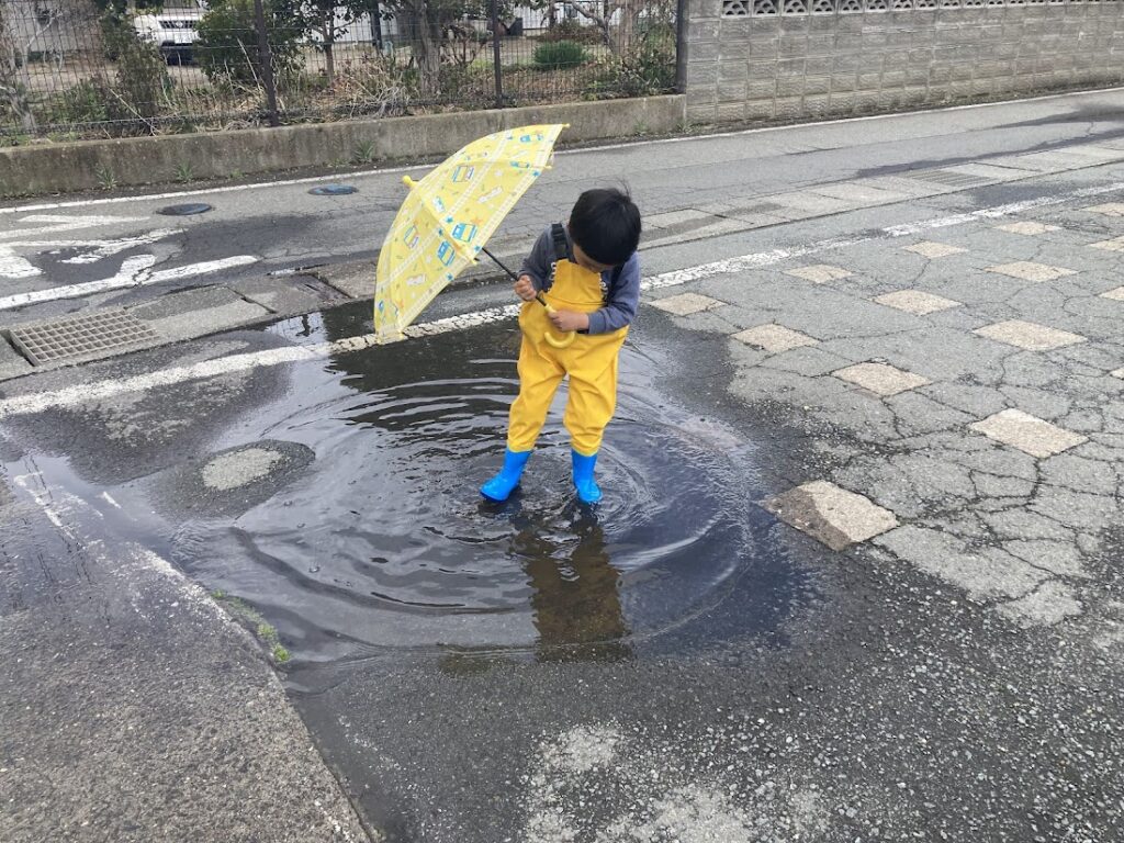 けれども、近所を歩くだけでも子どもにとっては面白いし、ましてやそれが雨の日ならなおのこと。